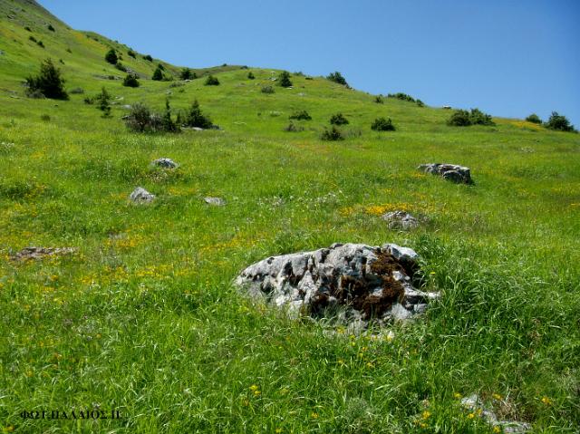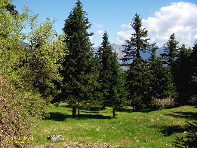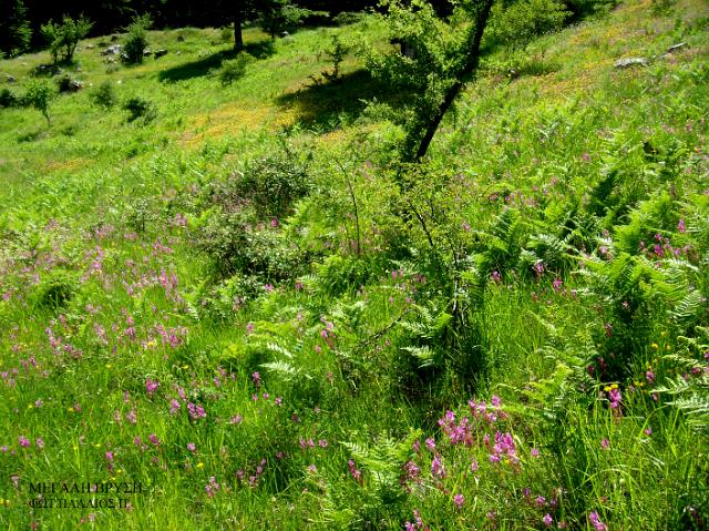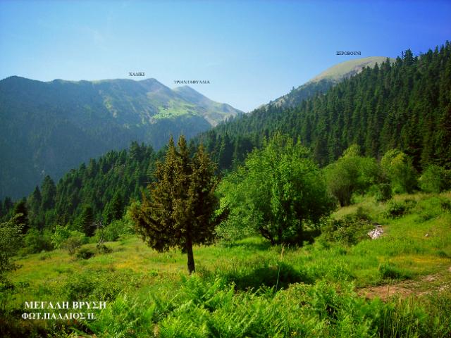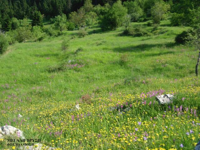Διαδρομή ΒΜήκος 6.500μ. και χρόνος 3-4 ώρες περίπου. Ξεκινάει κι αυτό από τον κεντρικό δρόμο Τόρνου - Καστανιάς. Ανηφορίζοντας μέσα στο πυκνό ελατόδασος, φτάνουμε στην περιοχή της "Μεγάλης Βρύσης". Εικάζεται ότι η περιοχή αυτή ήταν παλιά κατοικημένη και αυτό το μαρτυρούν απομεινάρια λίθινων κατασκευών. Από το εκκλησάκι των Αγίων Αποστόλων, βόρεια, σε απόσταση χιλίων μέτρων βρίσκεται το ξωκκλήσι του Προφήτη Ηλία. Η "Μεγάλη Βρύση", σε υψόμετρο 1.200μ., δικαιολογεί το όνομά της με τα άφθονα νερά και είναι χώρος αναψυχής. Σε απόσταση 1.500μ. νότια βρίσκονται οι "Μαντουλάκες", περιοχή με πολλά υπεραιωνόβια έλατα ένα εκ των οποίων είναι 300 ετών περίπου. Συνεχίζοντας από τη "Μεγάλη Βρύση" περνάμε το λιβάδι "Κορομηλιά" και φτάνουμε στον αυχένα, όπου υπάρχει το μονοπάτι για το χωριό Καστανιά. Εμείς ανηφορίζουμε νοτιοανατολικά στην κορυφογραμμή, φτάνουμε στην κορυφή "Τριανταφυλλιά" (1.817μ.), κατηφορίζουμε στη Χαλικόβρυση και επιστρέφουμε στον αυχένα. |