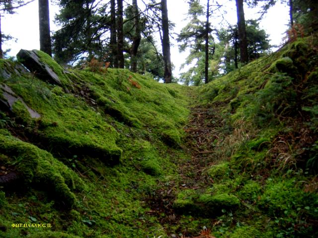 Διαδρομή ΘΜήκος 5.000μ. και χρόνος 2 ώρες, 30 λεπτά περίπου. Είναι μια δύσκολη ανηφορική πεζοπορική διαδρομή σε ευθεία γραμμή σε πλαγιά με μεγάλη κλίση. Αρχίζει λίγο πριν από τους καταρράκτες του Χαλικορέματος σε υψόμετρο 900 μέτρα και καταλήγει στην κορυφογραμμή σε υψόμετρο 1500 μέτρα, όπου συναντά το "Μονοπάτι της Σκάλας". Η επιστροφή μπορεί να γίνει ή από Καστανιά ή από τη διαδρομή Β. Η μόνη παρέμβαση στη διαδρομή αυτή είναι η σήμανση. |